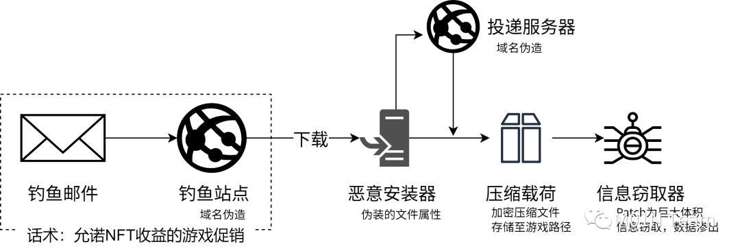 图1 伪造为游戏促销活动的信息窃取器攻击流程