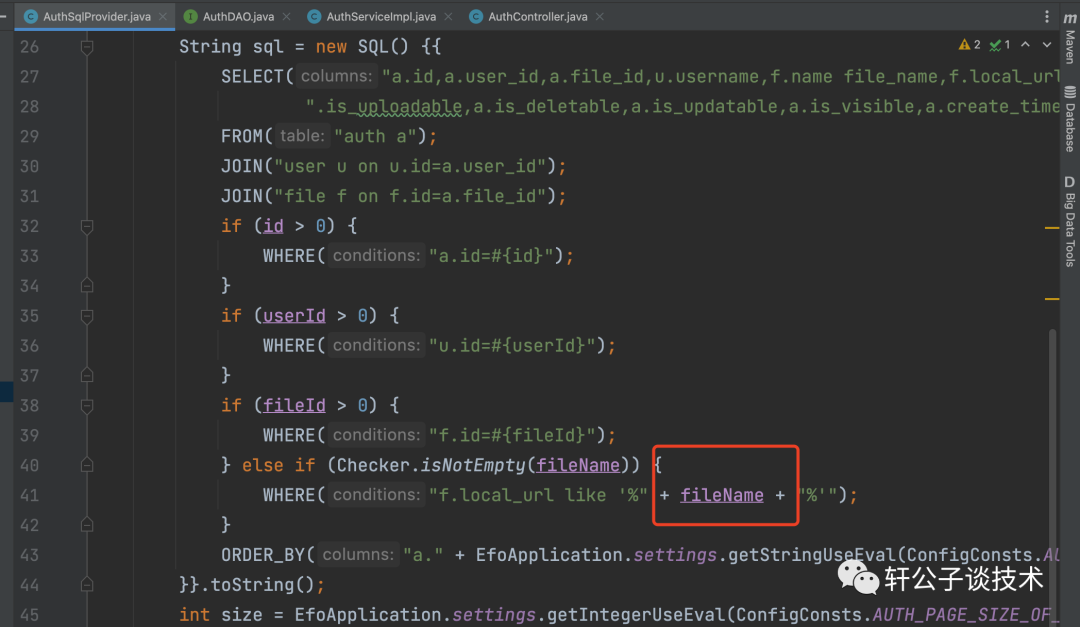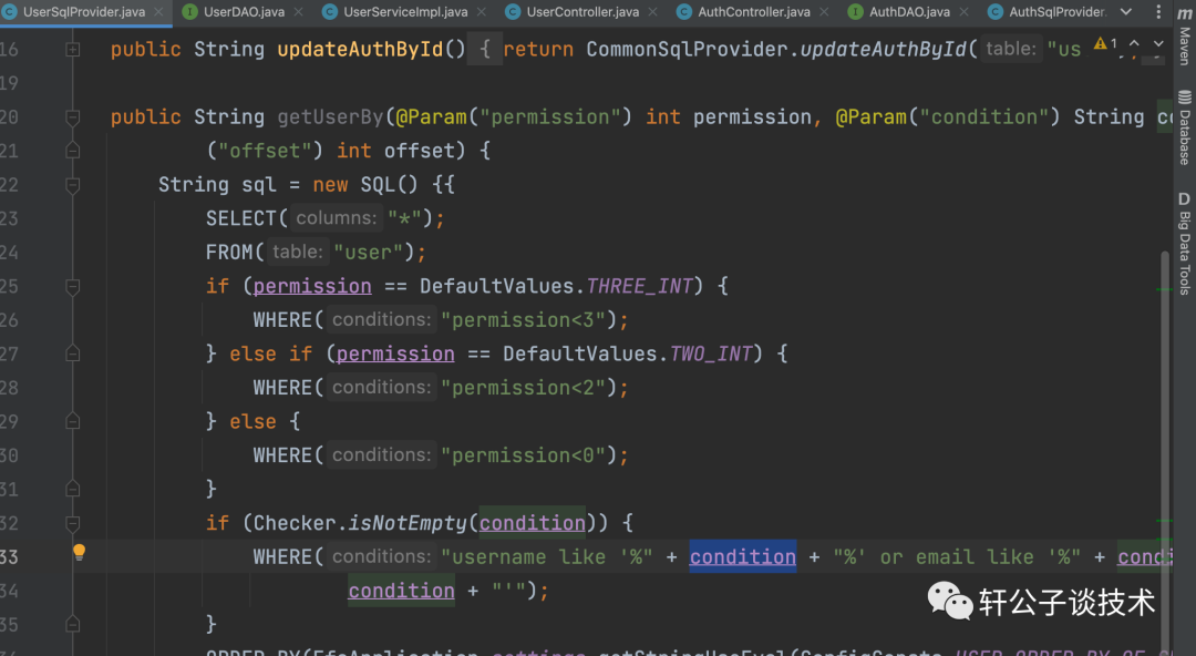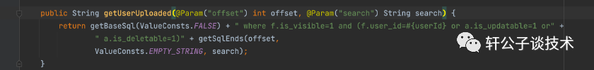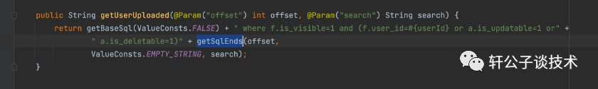 @SelectProvider(type = FileSqlProvider.class, method = "getUserUploaded")然后调用了getSqlEnds方法