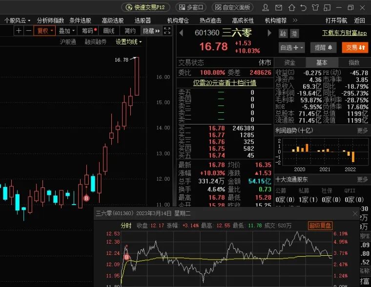 所以,我在对人工智能这个大题材有着如此的判断,并对当前市场主线有着清楚的定位之下,与3月14日三六零率先带领人工智能方向尝试再度突围的情况下果断现在买入三六零,并且在市场主线非常明显的情况下一直在强调当前的主线是人工智能,各分支强势股进入了随便买入的阶段。并且,再度与本周四,也就是3月22日加金新开仓了NLP方向的拓尔思。
