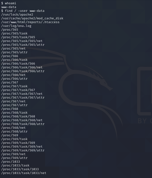 查看当前用户为www-data,使用find命令搜索属主为www-data的文件
