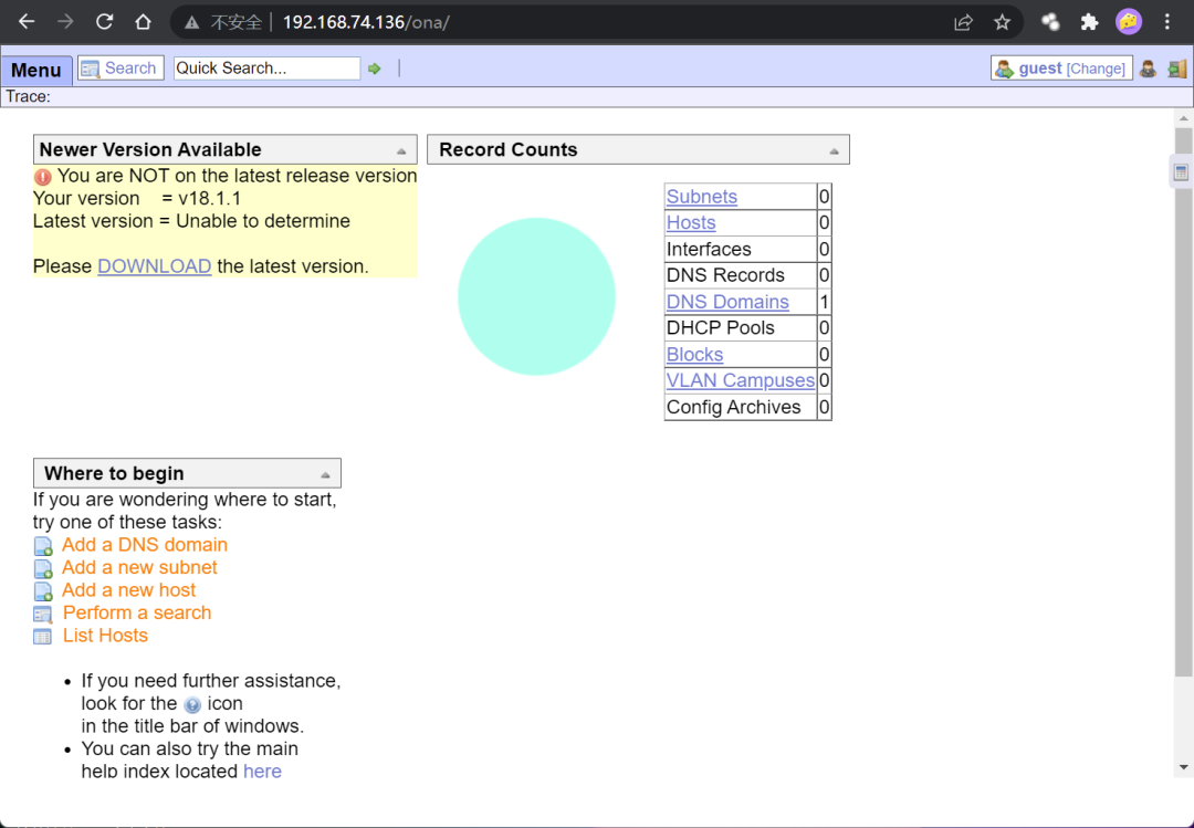 通过ona路径发现一款名为OpenNetAmin网络管理工具的界面