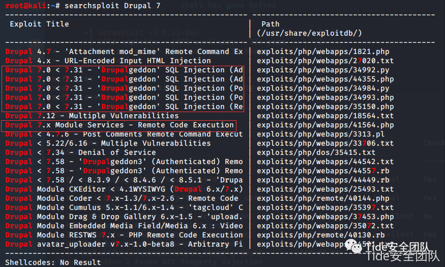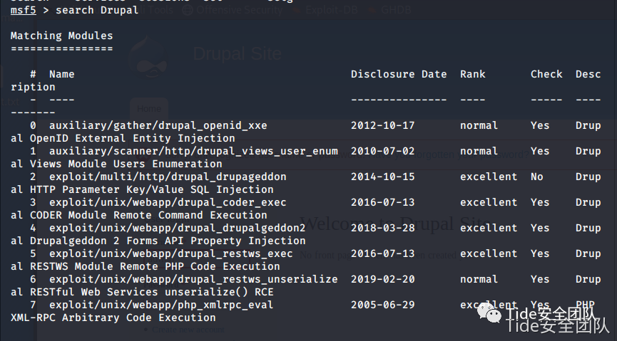 msfconsole ##启动msfsearth Drupal ##搜索Drupal