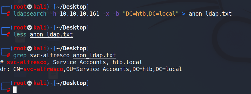 anon_ldap.txt文件,过滤出svc-alfresco用户的信息那我们拿到账号和用户名后,我们得检查一下是否启用了预认证,这里解释一下什么是预认证
