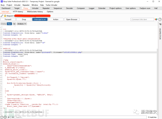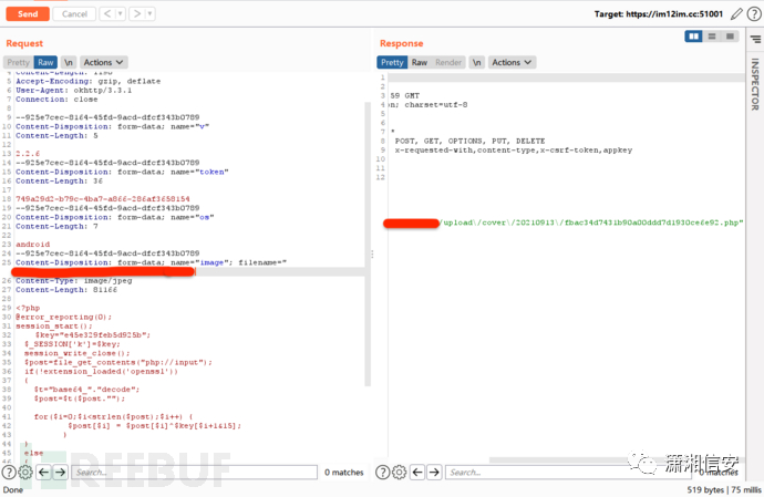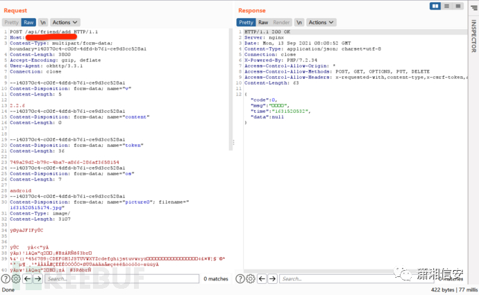 修改数据包将其文件名后缀修改为php时则无法上传,可能存在防护机制
