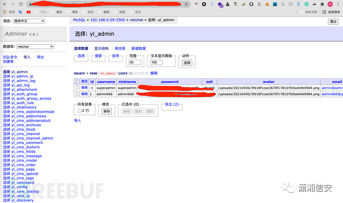 在数据库中还有些意外收获,里面包含了一些管理员的账号密码