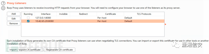 在 BurpSuite 中设置监听地址以及监听端口,其中地址为内网的IP地址
