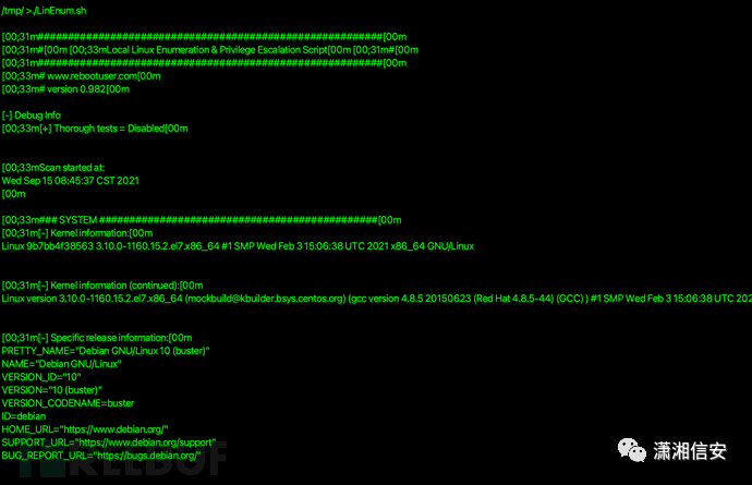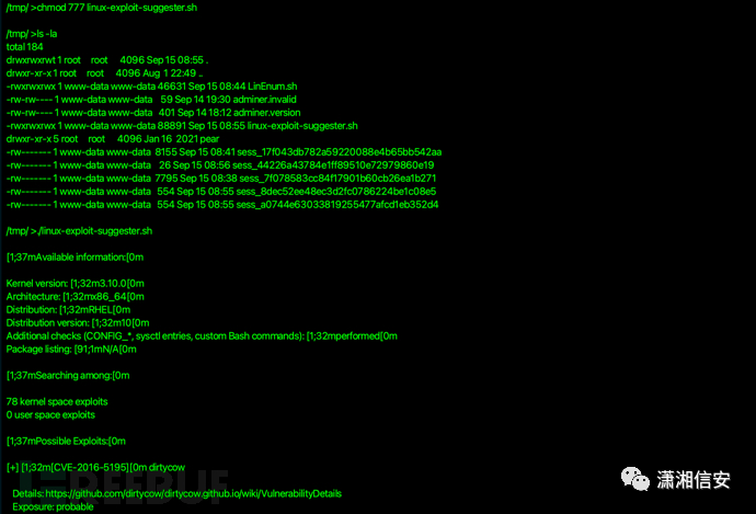 上传linuxenum和linux-exploit-suggestor,赋予执行权限并执行
