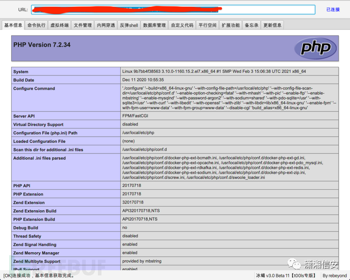 至此 webshell 成功上线,但可惜的是这是 docker 环境。同时为了维持对目标站点的控制,继续上传了一个哥斯拉马