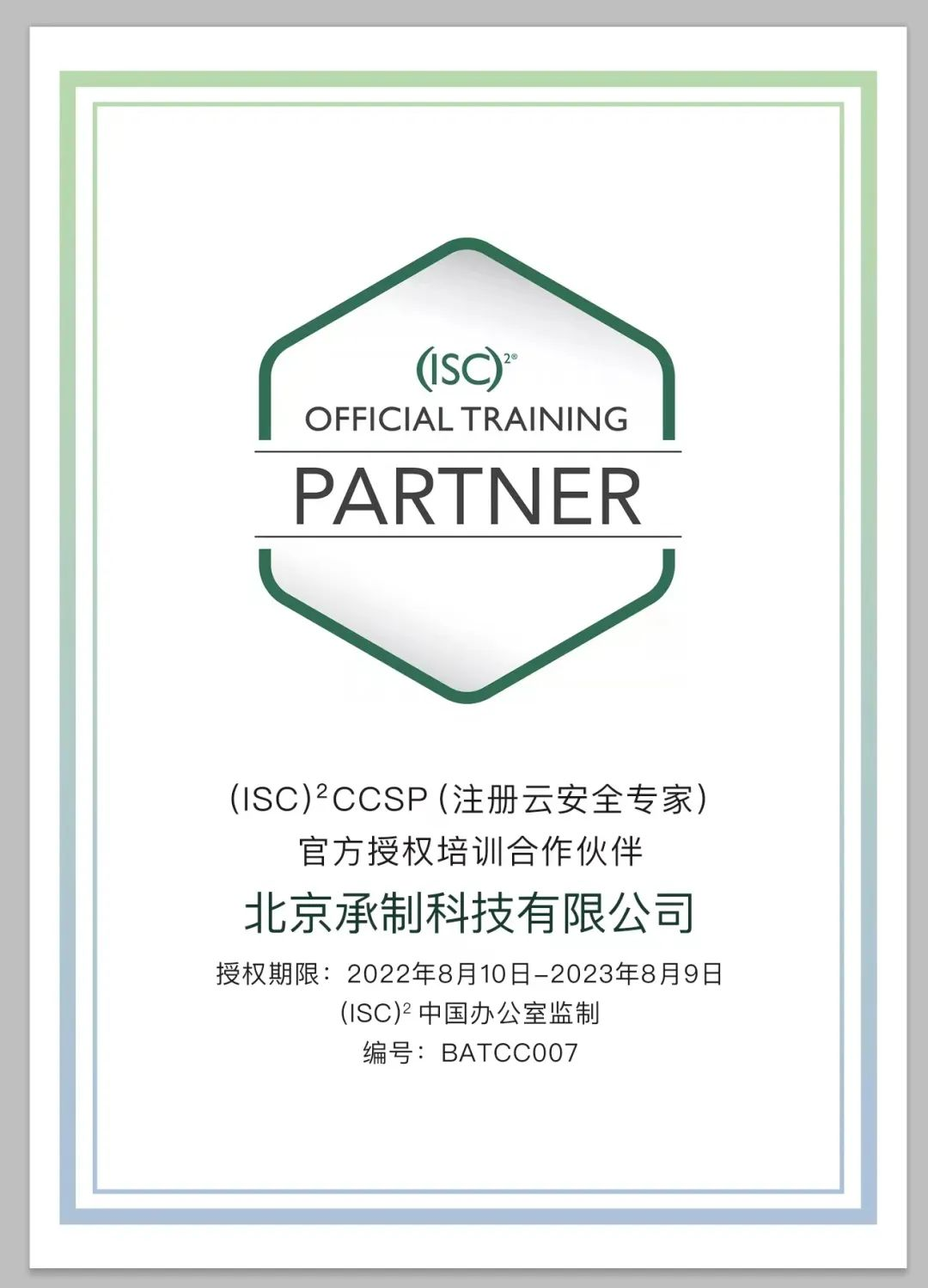 自2022年8月1日起CCSP注册云安全专家认证可以在北京、广东、上海、沈阳等地约中文考后,承制科技第一时间取得了CCSP的官方培训授权并组织开展了CCSP培训。