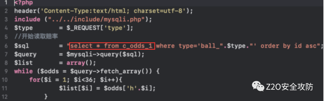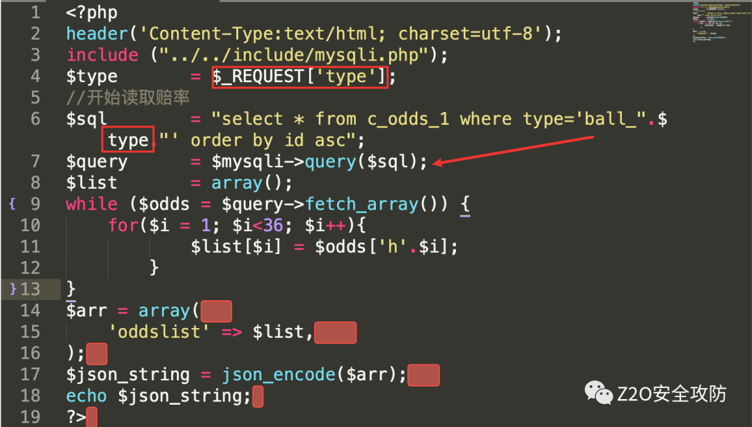 找到文件Get_Odds_1.php, 发现其中的$type参数直接拼接进SQL语句中,存在注入。