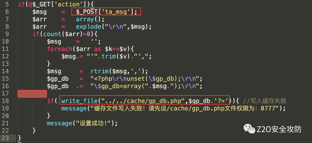 可以看到这里写入的文件是php文件,且内容可以通过ta_msg参数进行控制,也没有过滤,只有简单的去除两边的空格,这里务必要自己本地进行构造下,避免出现闭合失败的错误。