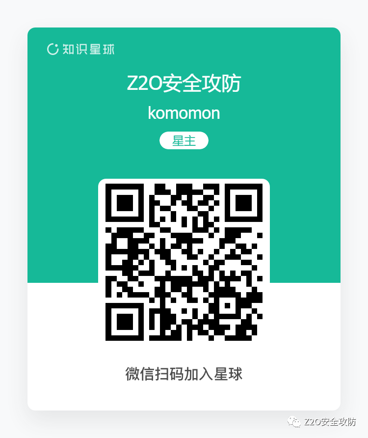 关注公众号回复“加群”,添加Z2OBot 小K自动拉你加入Z2O安全攻防交流群分享更多好东西。