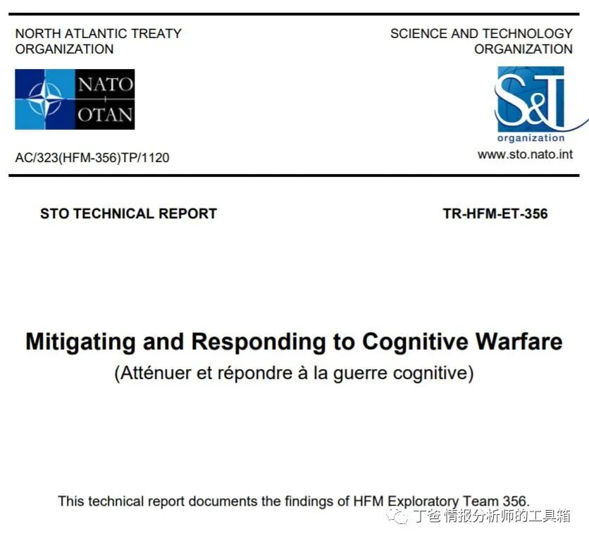 2022 年 4 月 4 日至 8 日在波兰索波特举行的 NATO ACT Tide Sprint 会议将探讨认知战,该研讨会的重点是确定防御认知战所需的科学和技术。今天给大家推荐北约的认知战相关文章《缓解和应对认知战2023》