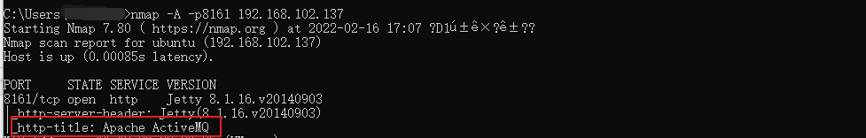 nmap -A -p8161 x.x.x.x二、(CVE-2016-3088) ActiveMQ(PUT、MOVE)不安全方法利用