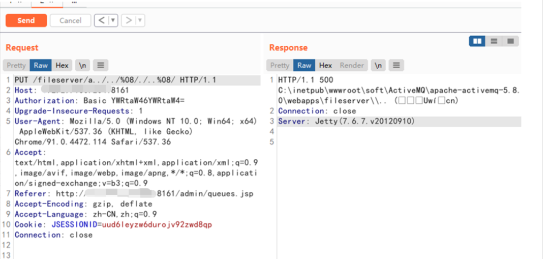 ActiveMQ默认开启PUT、MOVE请求,当开启PUT时,构造好Payload(即不存在 的目录),Response会返回相应的物理路径信息