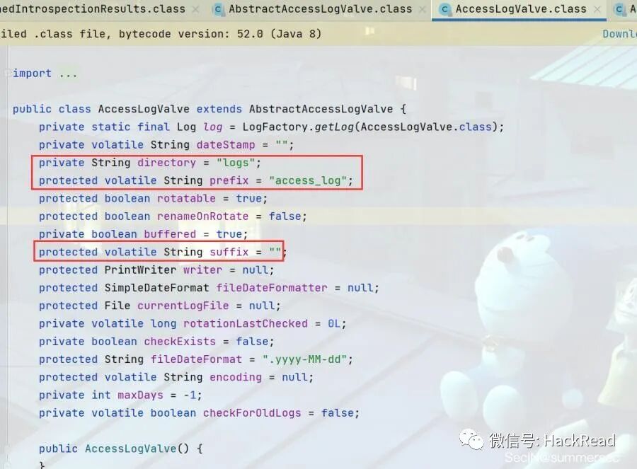 className="org.apache.catalina.valves.AccessLogValve"对应设置日志文件的日志规范类,控制日志文件的文件名、文件后缀和日志输出格式等信息。这里我们就大致理解payload中的suffix、prefix和pattern的作用了。