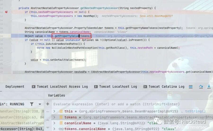 但debug看堆栈发现,并不是getPropertyValue去调用了 getPropertyAccessorForPropertyPath而是setPropertyValue调用的。