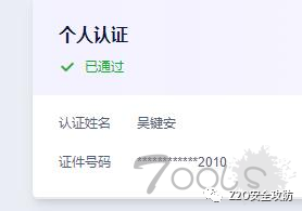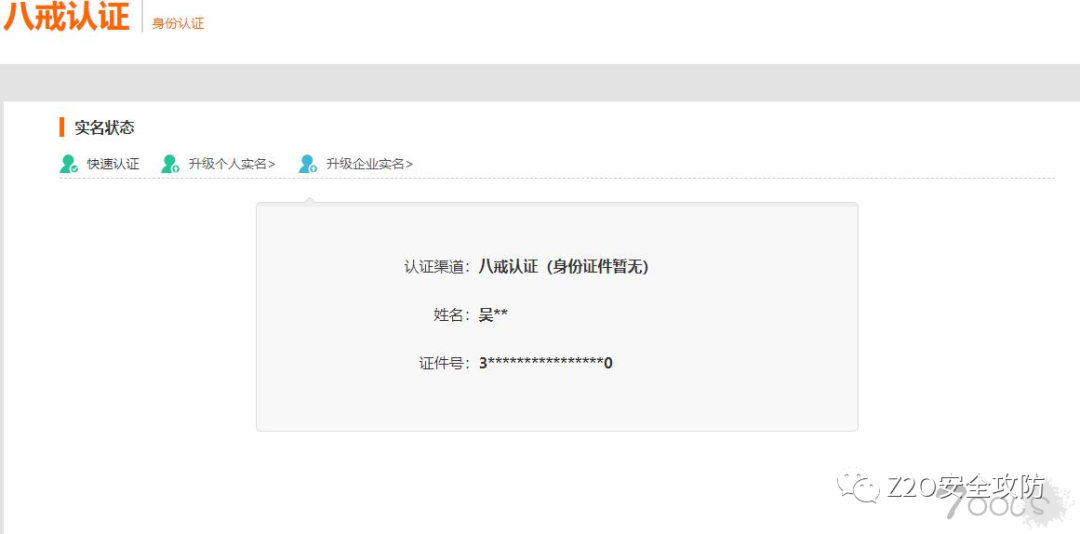 随后在八戒网看到的认证,姓吴还有个完全不知道怎么入手的身份证,因为出现了两个名字,试下支付宝转账看看情况,判断姓,大致这个吴*安就是这个网站的运营者,先记着吧
