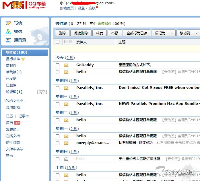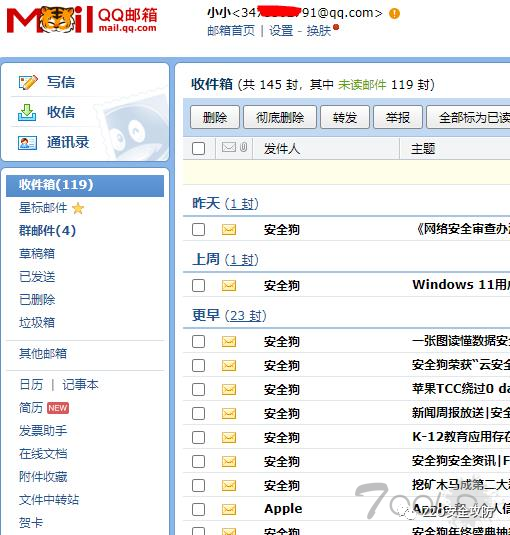 然后又登录了他另一个邮箱,结果也是没有啥发现,只发现了他的一个固定ip,结合服务器登录日志可以知道ip为:112.47.174.186 因为我把日志清理了找不到了 就没截图,之前记下过这个登录ip