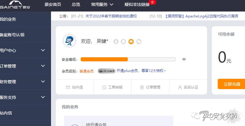 随后又成功登陆上景安,名字显示吴健*,这下知道全名了,刚才通过支付宝搜索QQ邮箱转账的,同时几个网站都是同名,这样的话基本上可以坐实这个名字是他本人