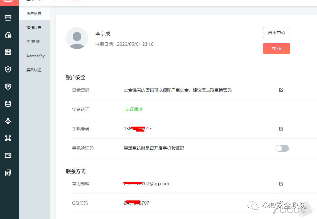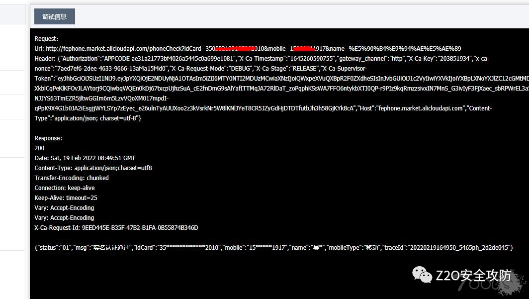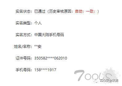 这下得到了完整的身份证号,这里就使用实名认证三要素来判断确认这个身份证年月日是否正确,可以看到身份证+两个手机号+名字均为本人