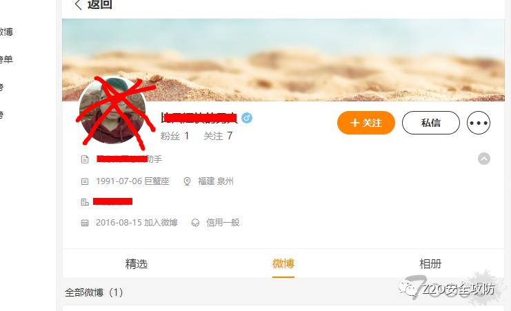 现在得到了手机号、姓名。离身份证也就只差年月日了,然后打算从头再去看看之前的网站有没有年月日被我疏漏的,但是恍然大悟才想起来,还有一个微博,马上打开微博链接,可以看到年月日,但是没办法判断是否是真实的,这个人的头像估计也是他本人了,只要确定这个年月日基本就可以做实