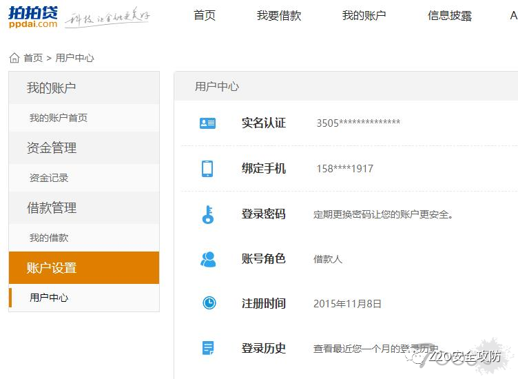 然后又在某个网站找到了证件号后四位,然后翻了一大截,又在拍拍贷发现了证件号前4位,然后身份证就可以拼接出350*************2010