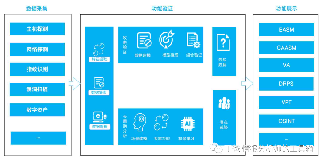 通过多种方式收录漏洞、融合异构数据,同时结合开源网络情报,对企业业务相关的信息也加以收录、甄别、关联,将离散的数据通过安全分析智能引擎,进行数据建模,实现全方位的攻击面管理体系。