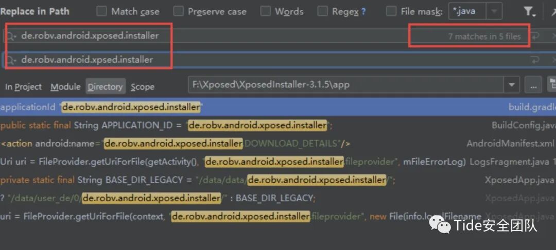 然后把所有的de.robv.android.xposed.installe都改成de.robv.android.xpsed.installer