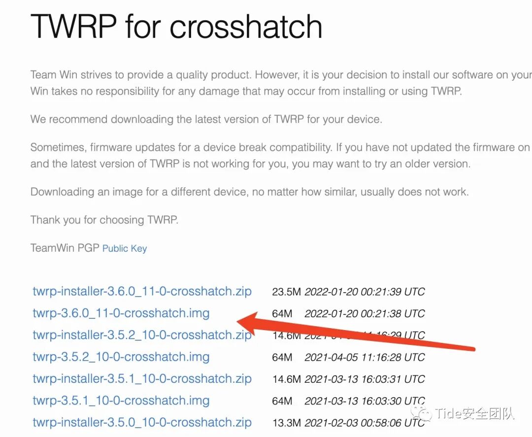 首先,前往TWRP官网Devices下载最新版临时TWRP镜像文件.img。