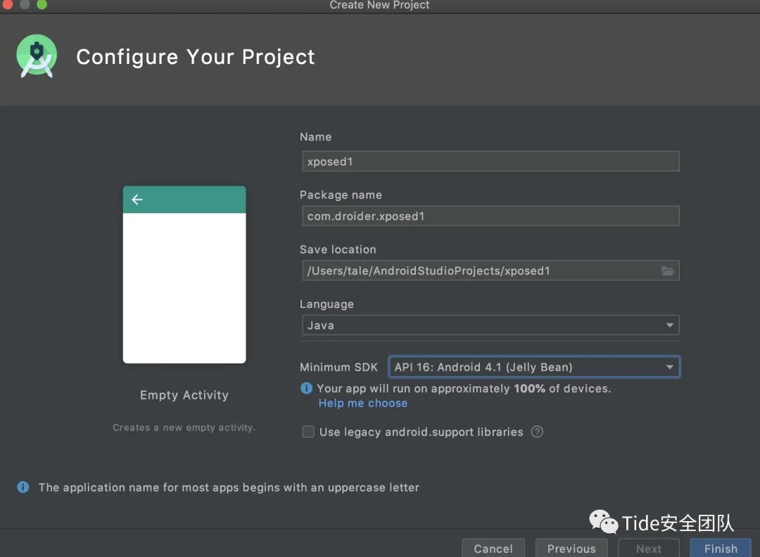 首先使用AndroidStudio新建一个Empty Activity工程。