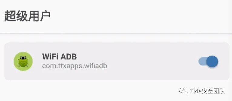 这时为了检测一下手机是否root成功,我们安装wifi adb并运行,发现软件请求的超级用户权限。下图为软件开启root权限:
