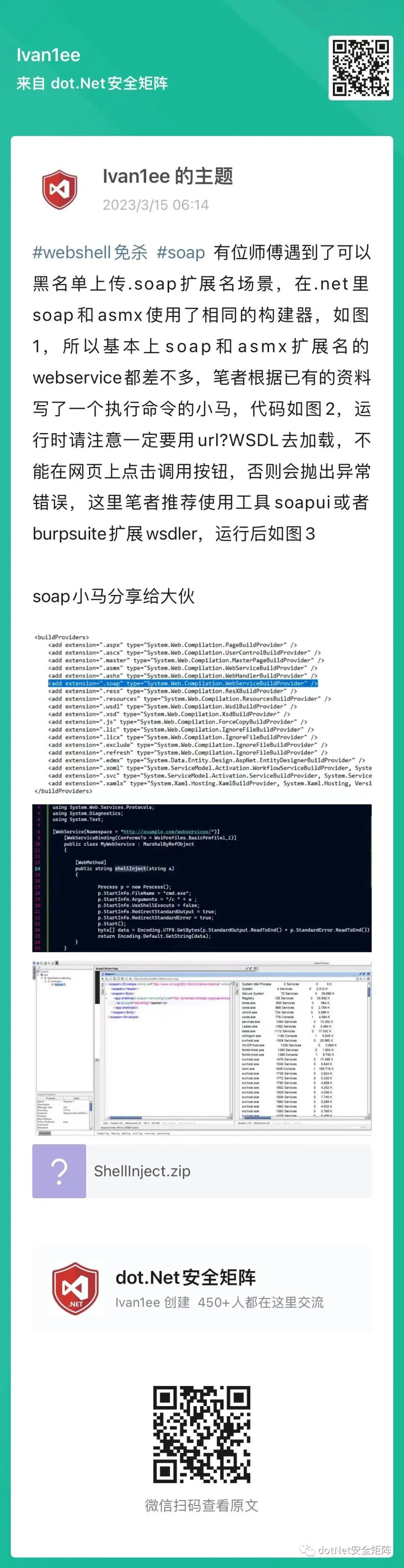 dotNet安全矩阵知识星球 — 聚焦于微软.NET安全技术,关注基于.NET衍生出的各种红蓝攻防对抗技术、分享内容不限于 .NET代码审计、 最新的.NET漏洞分析、反序列化漏洞研究、有趣的.NET安全Trick、.NET开源软件分享、. NET生态等热点话题、还可以获得阿里、蚂蚁、字节等大厂内推的机会