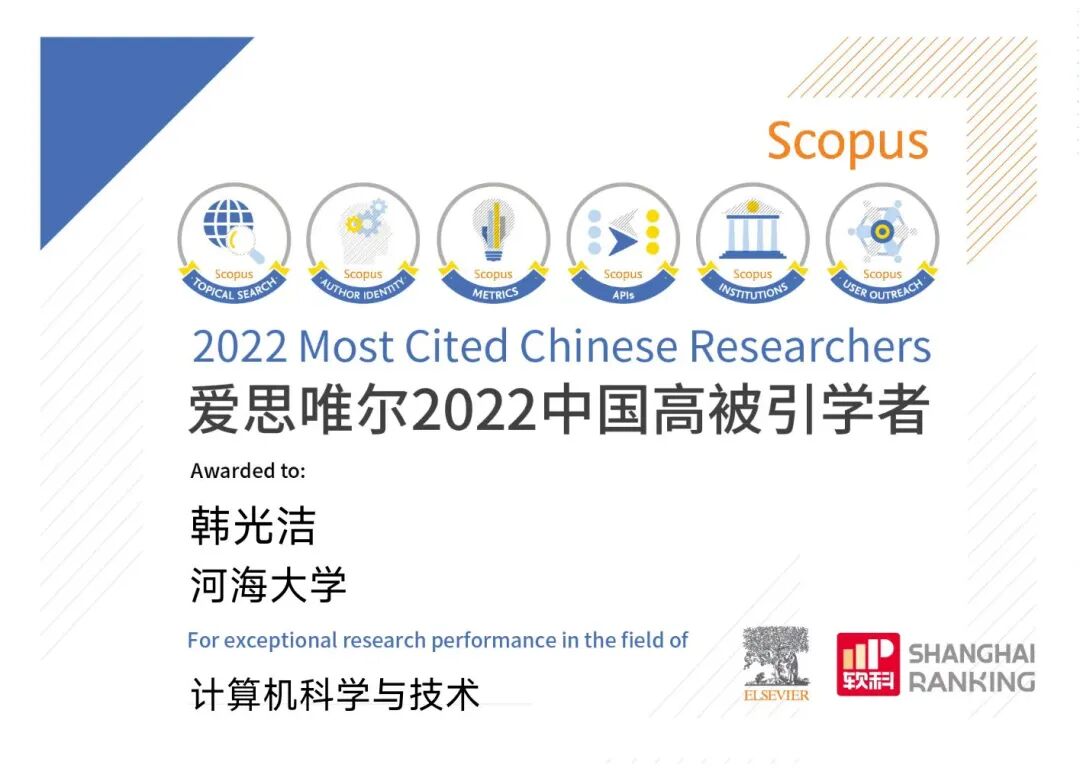 实验室韩光洁教授入选爱思唯尔2022中国高被引学者榜单