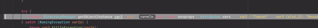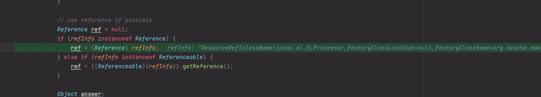 var3,这里又和情况1,加载远程codebase中的reference有点类似了,但是此处为ResourceRef,继续跟进