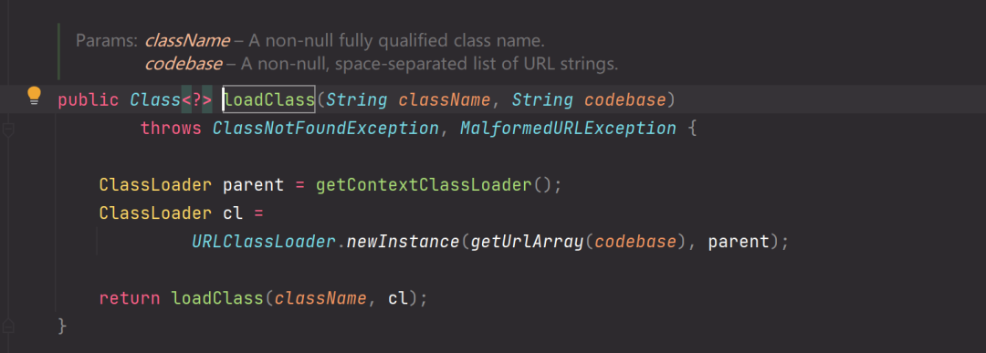 在使用远程codebase进行loadClass时不会像上面这样直接去Class.forName()而是