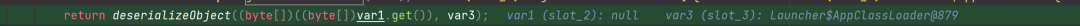 这次直接在第一个if就符合有javaSerializeddata属性的条件,直接跟进deserializeObject()方法,传入两个参数: