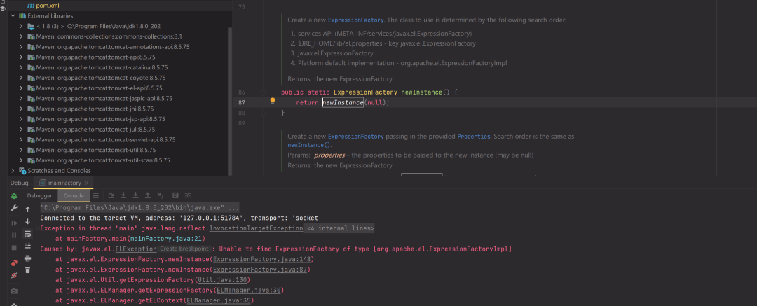 但是实例化时会报错,缺少ExpressionFactory,必须搭配如下依赖才行