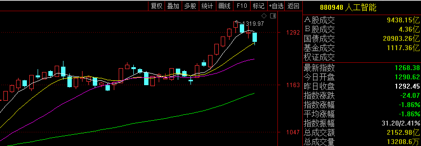 但目前,我并不确定明天AI指数是下跌反弹留下影线的局部止跌,还是纯粹的低开低走再度阴线,甚至小反弹。