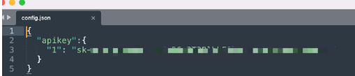 1、chatGPT-CodeReview会在~/.config/chatGPT-CodeReview/目录下生成config.json文件,将apikey配置到1处: