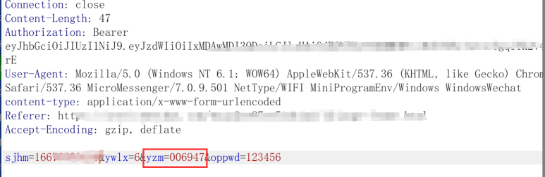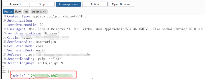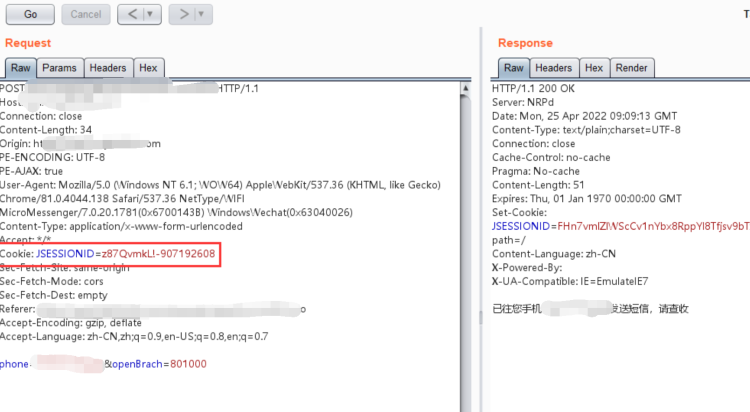 点击提交,抓包改成其他刚刚接收短信的手机号
