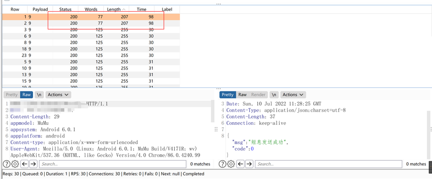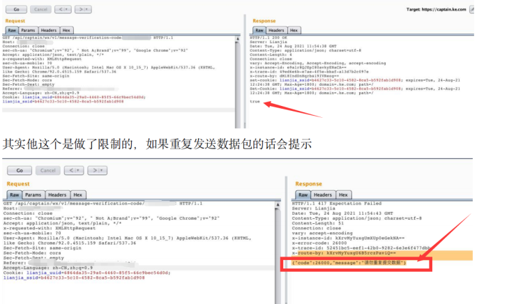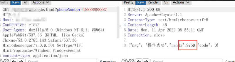 用户绑定了手机号,正常来说是获取绑定手机号的短信,通过burp修改成其他手机号