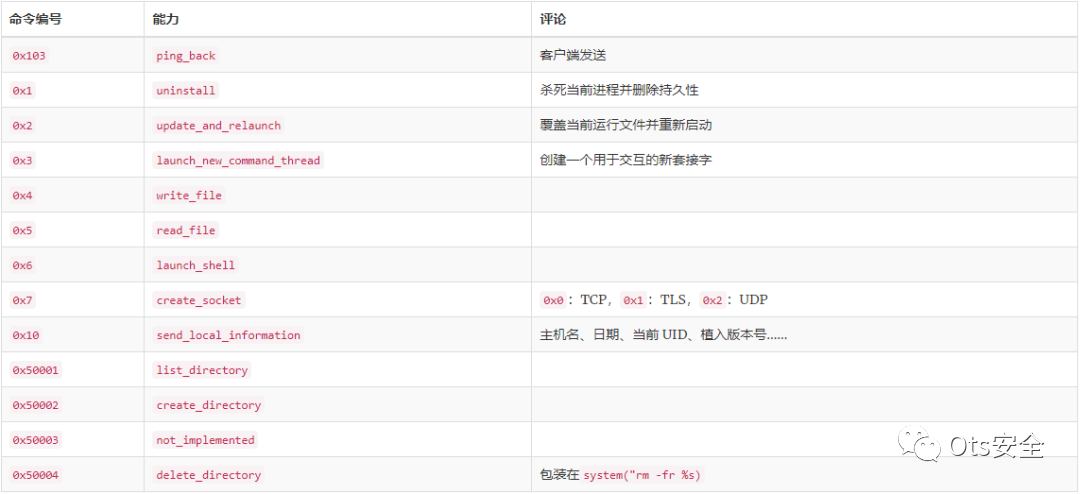 植入物支持的命令在样本之间发生了变化,显示了后门的当前发展。