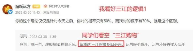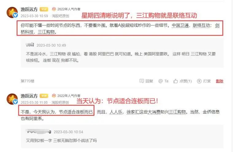 ((((((剑桥科技VS三江购物。))))) 下图有说明这些马前炮 所以,三江购物出现的时机是基本可以复制的,昨天本人是关注了三江购物,今天取关,当卖飞,但不可惜,因为执行了逻辑清晰,这些逻辑,昨天在公开贴《行情分水岭:明天!》有马前炮提示的。PS:这个贴子是3月27日行情退潮前书写,现在暂时没开新贴更新。(简单截图几个,如果看了,或不厌其烦截图的,请忽视即可,不喜勿喷)