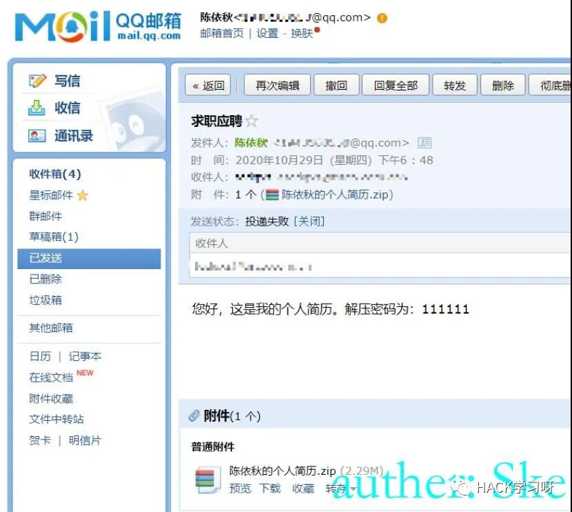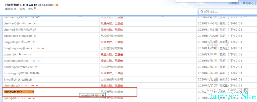 下图是我通过qq邮箱发送钓鱼邮件后,如果邮箱存在,则会显示已投递到对方邮箱,如果邮箱不存在,则显示投递失败,已退信。