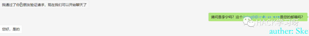 这里我直接报对方的名字和邮箱号,一是可以判断是否加错,二是获取对方的信任。